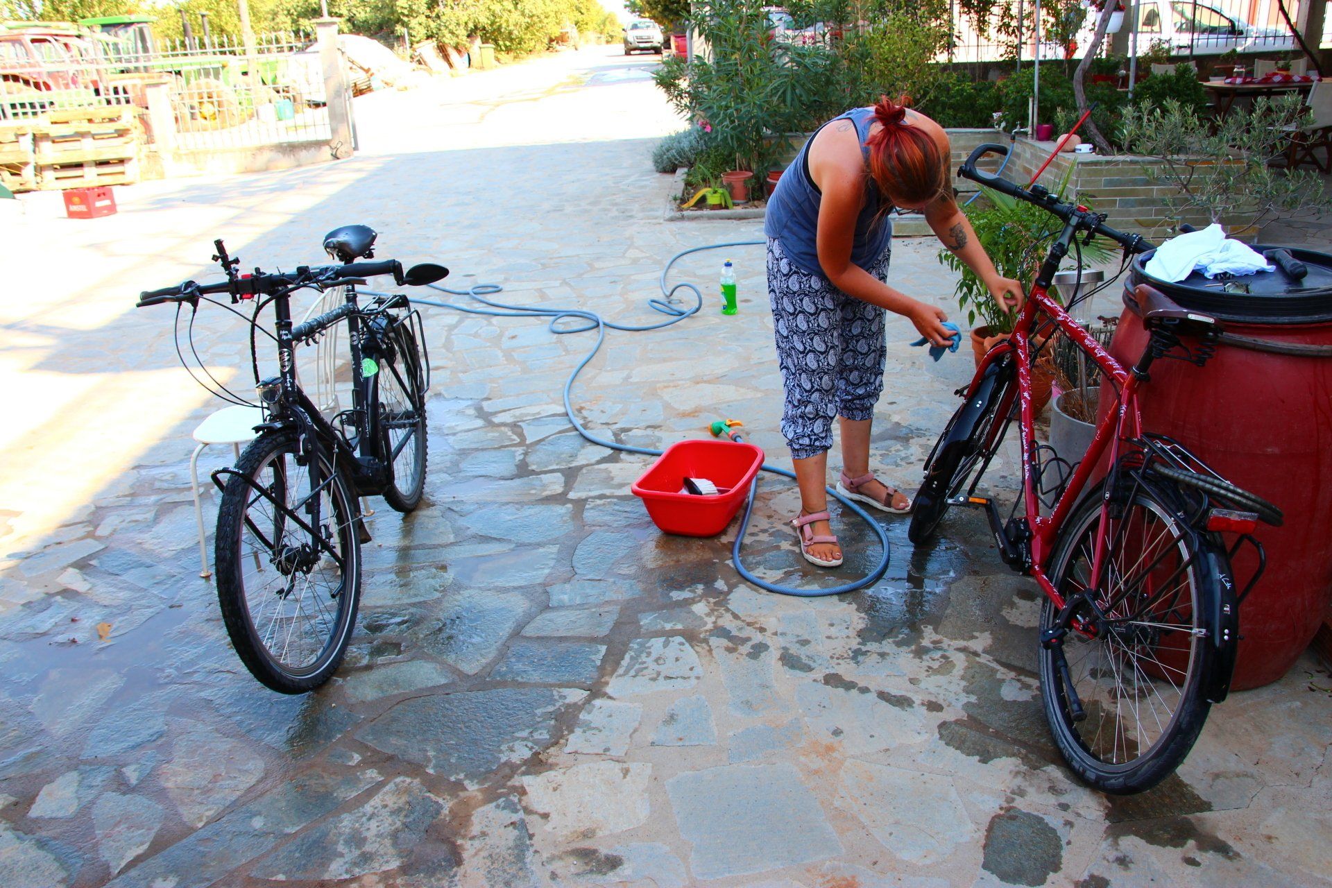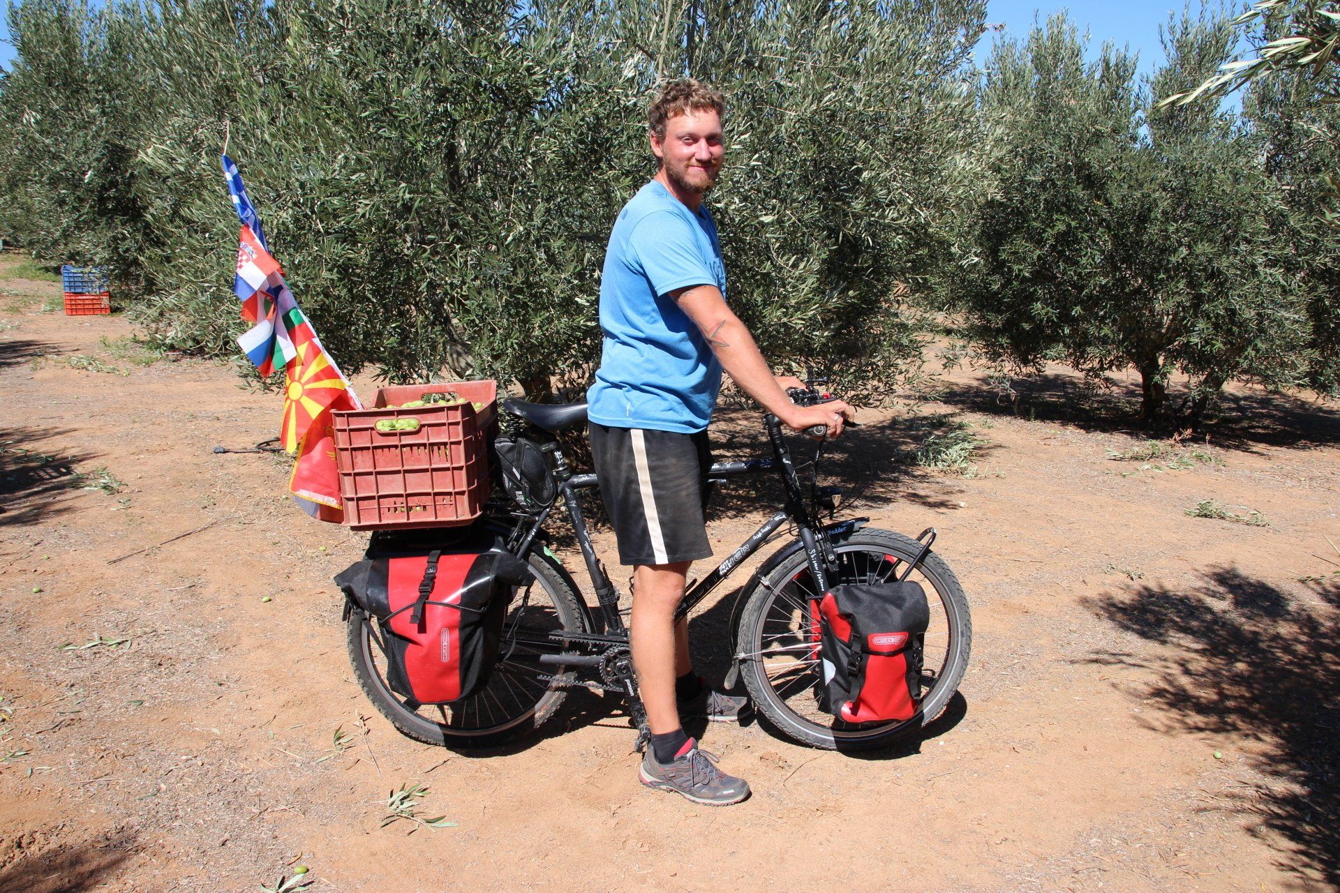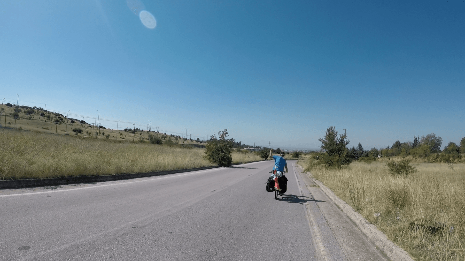 Nach einer Weile verlassen wir die Strandpromenade wieder und fahren noch ein Stück durch die Stadt, ehe wir Thessaloniki verlassen. Auf Nebenstraßen fahren wir immer weiter Richtung Osten nach Flogita. Immer wieder kommen wir dabei durch kleine Ortschaften. Die Strecke selbst verlangt noch mal einiges von uns ab. Ständig geht es rauf und wieder runter. Wir lernen mal wieder, dass die kürzeste Strecke nicht immer die leichteste ist. Langsam geht die Sonne unter. Warm ist es aber immer noch. „So, jetzt sind es noch knappe 16Km bis nach Flogita. Meinst du, du schaffst das noch?“ fragt mich Basti. „Jor. Sollte klappen“ antworte ich ihm. „Ok, dann schreibe ich meiner Oma mal“. Während wir auf eine Antwort warten, fahren wir schon mal weiter. Nur wenige Meter später hält Basti an. „Oma ruft an“ sagt er zu mir und nimmt das Handy in die Hand. Er telefoniert kurz mit ihr und erzählt mir anschließend, dass sie uns erwarten und mit uns und freunden Essen gehen wollen. Also schnell weiter. Kurz bevor wir Flogita erreichen, ist es auch schon dunkel. Als wir in die Straße zu Bastis Großeltern abbiegen, hören wir sie auch schon sich unterhalten. Als sie unsere Lichter entdecken, fangen sie an zu jubeln und zu rufen „Da kommen sie“.Keine Minute später sind wir da und werden klatschend begrüßt. Wow, wir haben es wirklich bis hier her geschafft. Nach der Begrüßung verstauen wir schnell unsere Räder und Taschen und gehen noch schnell duschen, ehe wir alle zusammen ins Restaurant fahren und dort den Abend bei gutem Essen und Wein ausklingen lassen. Die nächsten vier Wochen werden wir jetzt hier bei Bastis Großeltern verbringen. Langeweile kommt aber keine auf, denn wir haben viel vor. Entspannen, bei der Olivenernte helfen, ins Meer hüpfen und natürlich noch ein wenig entspannen. Außerdem kommt noch Bastis Onkel mit der kleinen Cousine vorbei. Insgesamt sind wir 6 ganze Tage mit der Olivenernte beschäftigt. Nach der Ernte planen wir unser weiteres Vorgehen. Da es leider momentan mit der Weiterreise Richtung Osten nicht ganz so gut aussieht (COVID-19), machen wir jetzt erst einmal eine große Rundreise durch Griechenland und schauen wie es danach weitergeht. Unterkriegen lassen wir uns jedoch nicht.