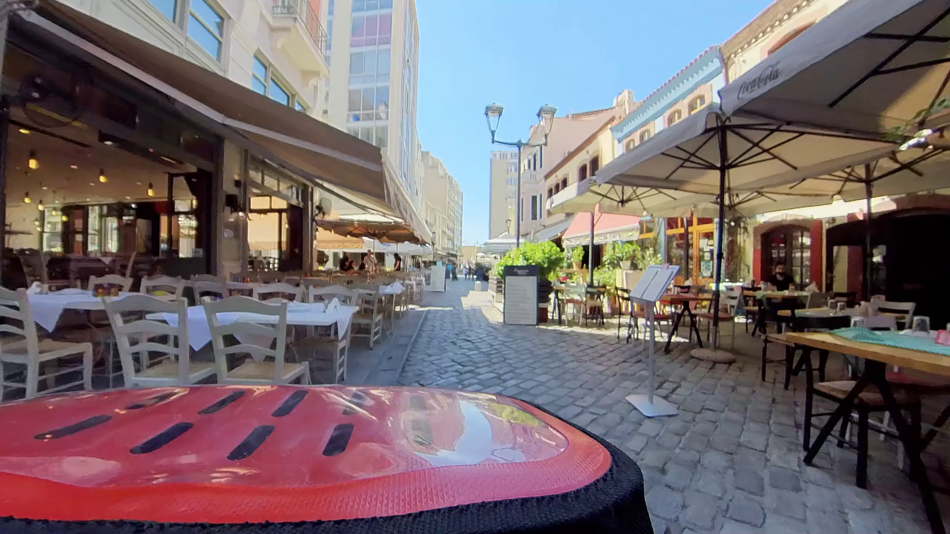 Heute lassen wir das Frühstück ausfallen, da wir beide nicht wirklich Lust auf Brot haben. Also packen wir unsere Sachen zusammen und schwingen uns wieder auf die Räder. Wir fahren wieder zurück zum Autobahnzubringer und schließlich wieder auf die Autobahn Richtung Süden. Heute wollen wir es bis hinter Thessaloniki schaffen. Bis nach Thessaloniki sind es noch knappe 45Km. Davon 36Km auf der Autobahn. Die ersten 13Km geht es fast nur bergauf, ehe es dann für mehrere Kilometer wieder bergab geht. Vom weiten sehen wir aber schon die kleine Bergkette, die noch zwischen uns und Thessaloniki liegt. Kurz vor der Bergkette nimmt der Autoverkehr deutlich zu. Zum Glück gibt es einen breiten Seitenstreifen. Während wir uns bei lauwarmen 34°C die 8% Steigung der Bergkette hoch quälen, saust der dichte Verkehr an uns vorbei. Oben angekommen nehmen wir die erste Ausfahrt und machen im Schatten eines Baumes erst einmal Pause. „Sag mir bitte das es jetzt bergab geht“ sage ich zu Basti, während wir unsere Räder an einem Laternenpfahl abstellen. Er nickt mir lächelnd zu und sagt dann „Ja. Bis Thessaloniki geht es jetzt bergab. Du kennst doch Thessaloniki“. „Ja, aber ich wollte es dennoch einmal hören“ antworte ich ihm. Wir setzten uns in den Schatten des Baumes und trinken etwas. Dabei beschließen wir uns ein nettes Restaurant direkt am Hafen auszusuchen und erst einmal etwas zu essen. Schließlich haben wir noch nichts gegessen und es ist gleich schon 14Uhr. Also schwingen wir uns wieder auf die Räder und fahren weiter. Von hier oben haben wir einen herrlichen Ausblick auf Thessaloniki. „Juhu. Da ist das Meer wieder“ ruft Basti mir zu, während wir bergab rollen. Stimmt, dass hätte ich fast vergessen. Da wir in der Vergangenheit schon öfters in Thessaloniki waren, haben wir keine Probleme uns in der Großstadt zurecht zu finden. Naja, Basti jedenfalls. Er lotst uns in eine Fußgängerzone, in der es viele Restaurants gibt. Wir halten an um uns eines auszusuchen. Während wir uns beratschlagen werden wir von einer Frau, die mit ihrem Mann und ihren zwei kleinen Kindern spazieren ist angesprochen. Sie fragt uns allerlei Dinge und ist sichtlich begeistert. Wo kommt ihr her? Alles mit dem Fahrrad? Wo wollt ihr hin? Und noch viele weitere Fragen. Anschließend fragt sie uns noch ob sie ein Foto von uns machen darf. Natürlich, antworten wir ihr. Anschließend verabschiedet sie sich von uns und wünscht uns noch eine gute Weiterreise.