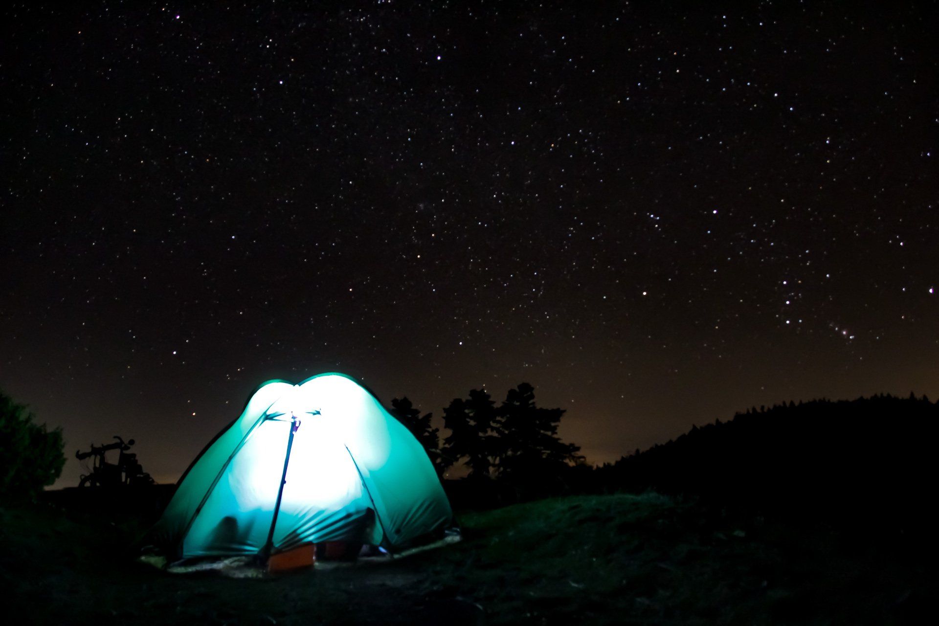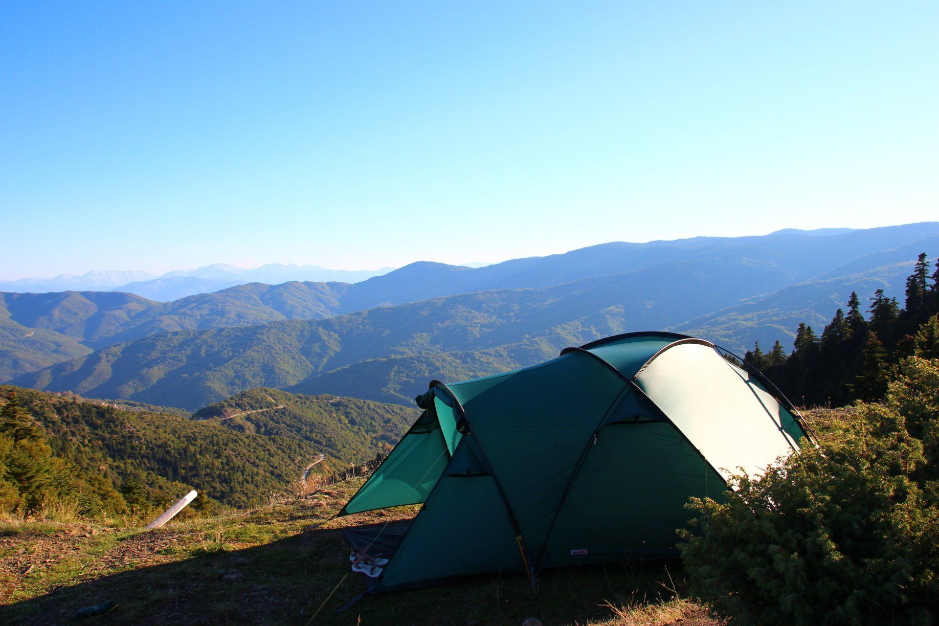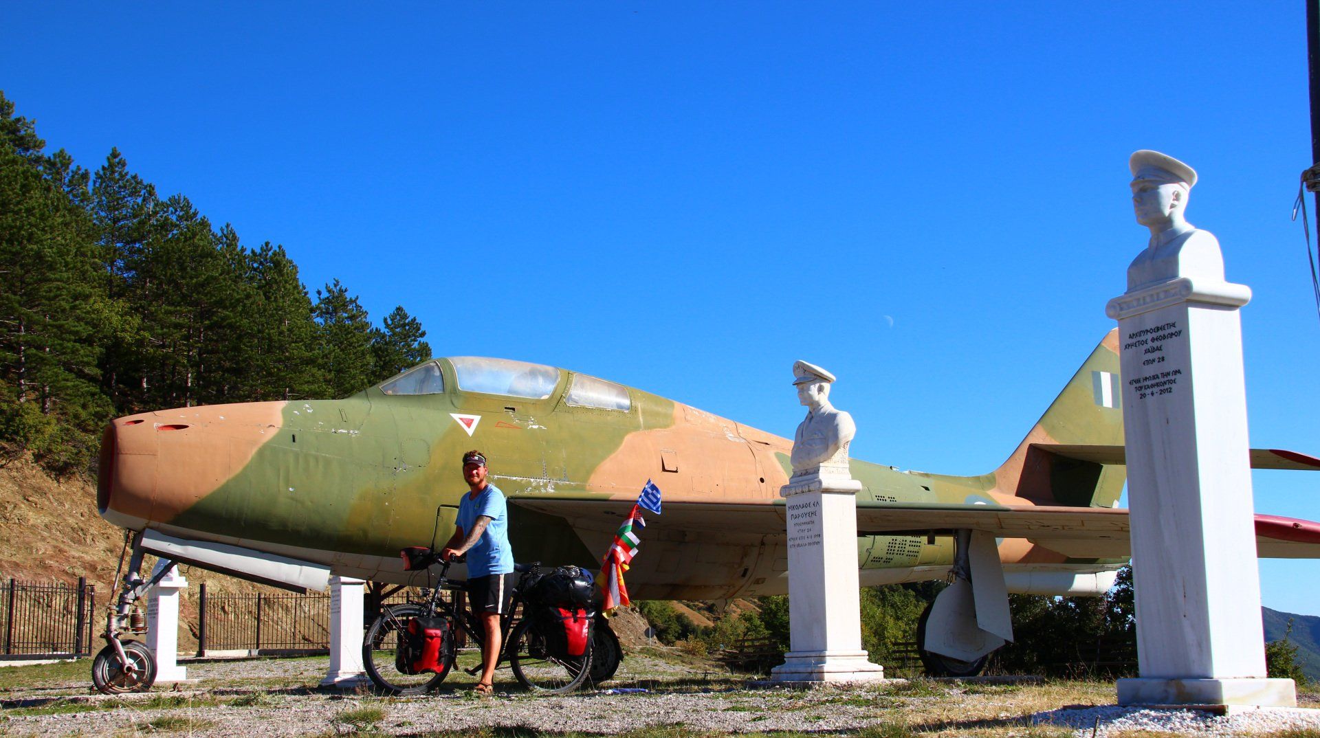 Einige Kilometer später gelangen wir an eine große Y Kurve. Genau im V des Y befindet sich eine Aussichtsplattform auf der sich ein Kampfjet, sowie vier Staturen und sogar ein sehr altes Feuerwehrauto befinden. Außerdem steht in einer Ecke auch noch ein Holzpavillon, das zum verweilen einlädt. „Das muss ich mir ansehen“ sage ich zu Jasmin und fahre auf das Holzpavillon zu, um mein Rad abzustellen. Sie folgt mir und stellt ihres neben mein Rad ab. Von der Aussichtsplattform aus hat man einen wirklich schönen Ausblick auf das tieferliegende Dorf Rentina und die um einen liegenden Berge. „Ich will unbedingt ein Bild von mir und dem Jet haben“ sage ich zu Jasmin und schiebe mein Rad zum Jet. Ich stelle mich neben den Jet und Jasmin macht ein paar Bilder. Ich bringe mein Rad wieder zurück und wir gucken uns noch den Rest an. Auf Säulen stehen Büsten von Männern in Pilotenuniform. In den Säulen selber ist auf griechisch scheinbar der Name und das Todesdatum, sowie das Alter beim Tod eingraviert . Da sie alle ein unterschiedliches Todesdatum eingraviert haben, gehen wir davon aus, dass sie eventuell aus diesem Dorf stammen. Zu guter Letzt gehen wir noch zu dem alten Feuerwehrauto rüber. So, weiter geht’s. Da es dem Abend entgegen geht, beschließen wir für heute langsam Schluss zu machen. „Ob wir was finden werden?“ fragt mich Jasmin. „Ja, denke schon. Bis jetzt haben wir immer einen guten Platz gefunden“ antworte ich ihr. Zwar sind Berge immer unglaublich schön, aber bei der Schlafplatzsuche immer etwas schwieriger. Denn auf der einen Seite hat man meist steil heraufgehendes Gelände und auf der anderen Seite stark abfallendes Gelände. Doch heute sollten wir Glück haben. Auf einem kleinen flachen Plateau zwischen zwei Bergkuppen, befindet sich zu unserer linken, eine kleine Pausenbucht mit fliesend Wasser und einer Bank. Wir halten an, um uns das mal etwas genauer anzuschauen. „Hey, da geht ein kleiner steiler Weg nach oben. Vielleicht finden wir da oben einen guten Platz“ sage ich zu Jasmin und stelle mein Rad an der Bank ab und folge dem Weg bergauf. Nach ungefähr 40 Metern flacht der Weg ab und endet nach ein paar weiteren wenigen Metern an einem Gebüsch. Hier wäre genug Platz für das Zelt und da wir hier höher gelegen sind als die Straße, können wir so auch nicht von ihr aus gesehen werden. Ich laufe den kleinen Weg wieder zurück zu Jasmin, um von meiner Entdeckung zu berichten. „Hört sich doch super an“ antwortet sie mir und wir schieben unsere Räder den steilen Weg hoch. Endlich oben angekommen mit Sack und Pack, setzen wir das Nudelwasser auf und bauen währenddessen unser Zelt auf. Anschließend wird gegessen und wir genießen noch die letzten Sonnenstrahlen, ehe wir uns ins Zelt legen. Heute nächtigen wir auf 1117hm. Gestartet sind wir heute morgen bei 186hm. Morgen geht es zuerst noch hoch auf 1343hm, ehe es dann wieder ein Stück bergab geht auf 1051hm, um dann wieder auf 1480hm hoch zu radeln. Aber das soll ja dann auch noch nicht alles gewesen sein. Von dort aus geht es dann wieder runter auf 414hm, um dann wieder auf 1438hm hoch zu trampeln. Naja, wir wussten ja vorauf wir uns einließen. Doch für heute reicht es uns. Wir liegen noch ein bisschen wach im Zelt und unterhalten uns. „So jetzt wird aber geschlafen“ sagt Jasmin zu mir. „Ok, aber vorher gehe ich noch kurz Pippi machen“. Also raus aus dem Zelt. Draußen erblicke ich einen wunderschönen klaren Nachthimmel. WOW geht es mir durch den Kopf. Schnell pullern und dann noch ein paar Bilder von dem Nachthimmel machen. So jetzt wird geschlafen.