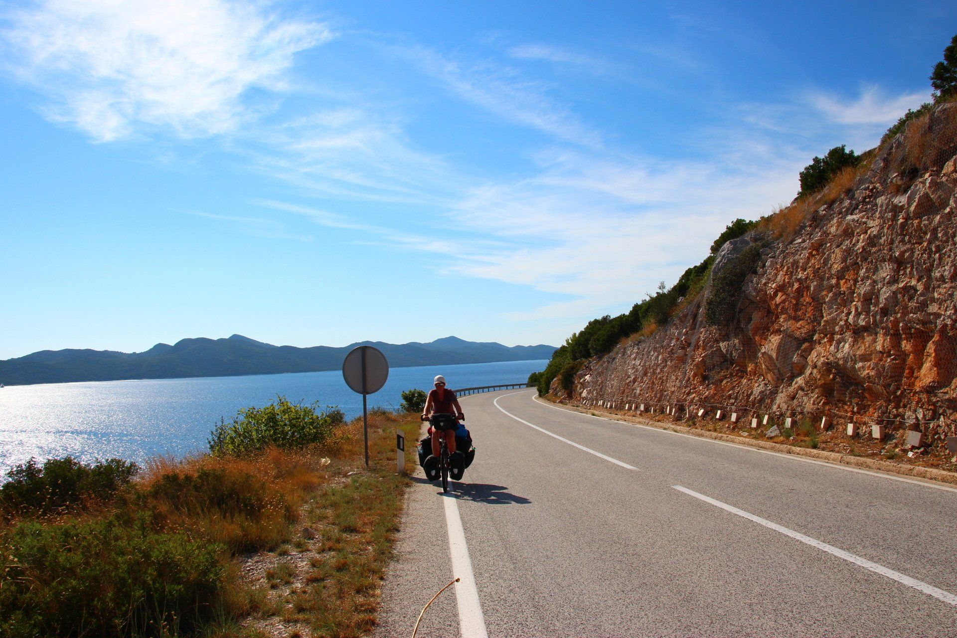 Er nimmt unsere Pässe entgegen und stellt uns sichtlich neugierig ein paar Fragen. „Aus Deutschland mit dem Fahrrad?“ „Wo wollt ihr denn nach Kroatien lang?“. Er gibt uns unsere Pässe zurück und wünscht uns noch einen schönen Tag und eine schöne Weiterreise. Bis Dubrovnik sind es jetzt noch 53Km. So wie auch schon die letzten Tage, geht es immer weiter entlang der Küste Richtung Süden. Und auch unverändert bergauf, bergab.