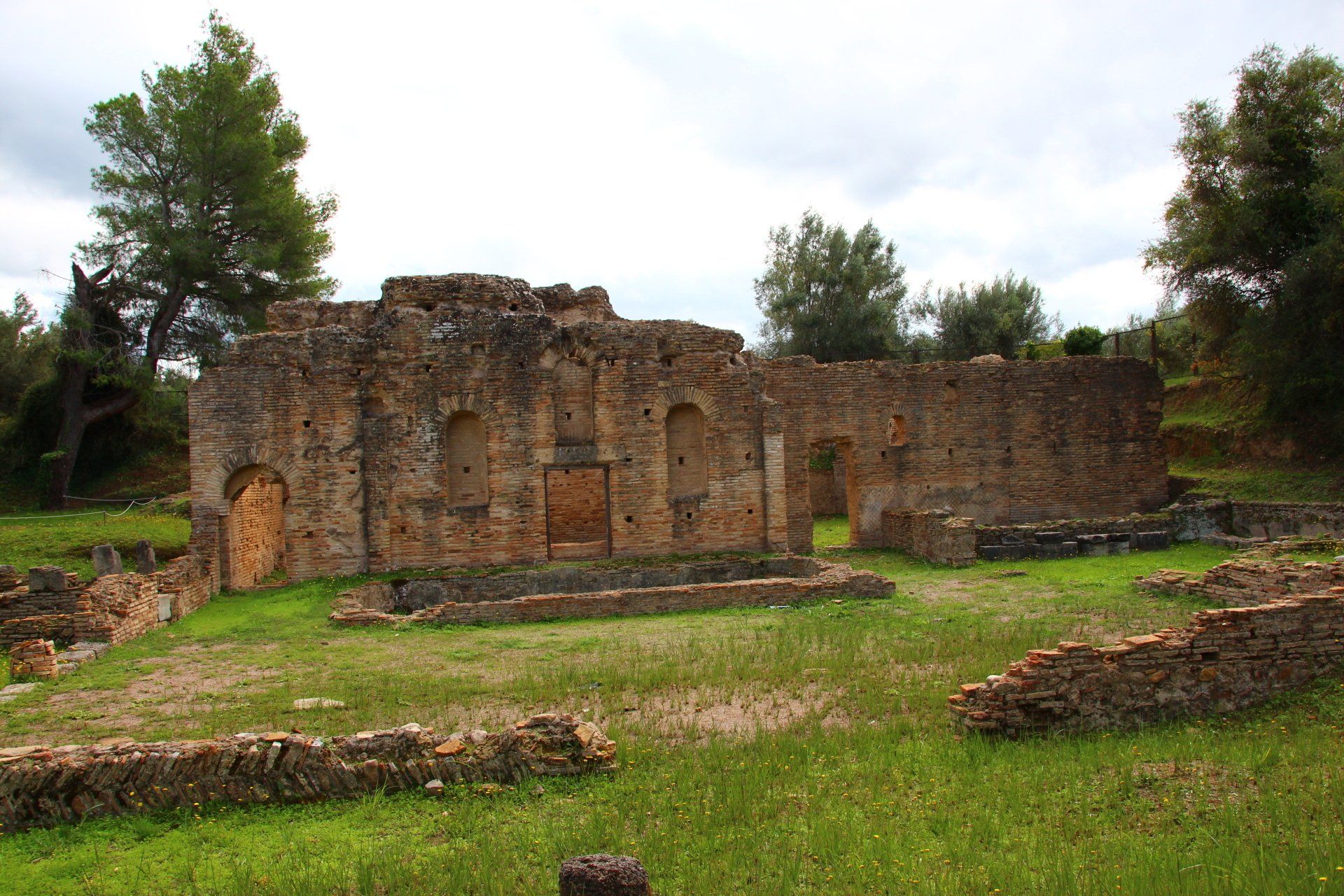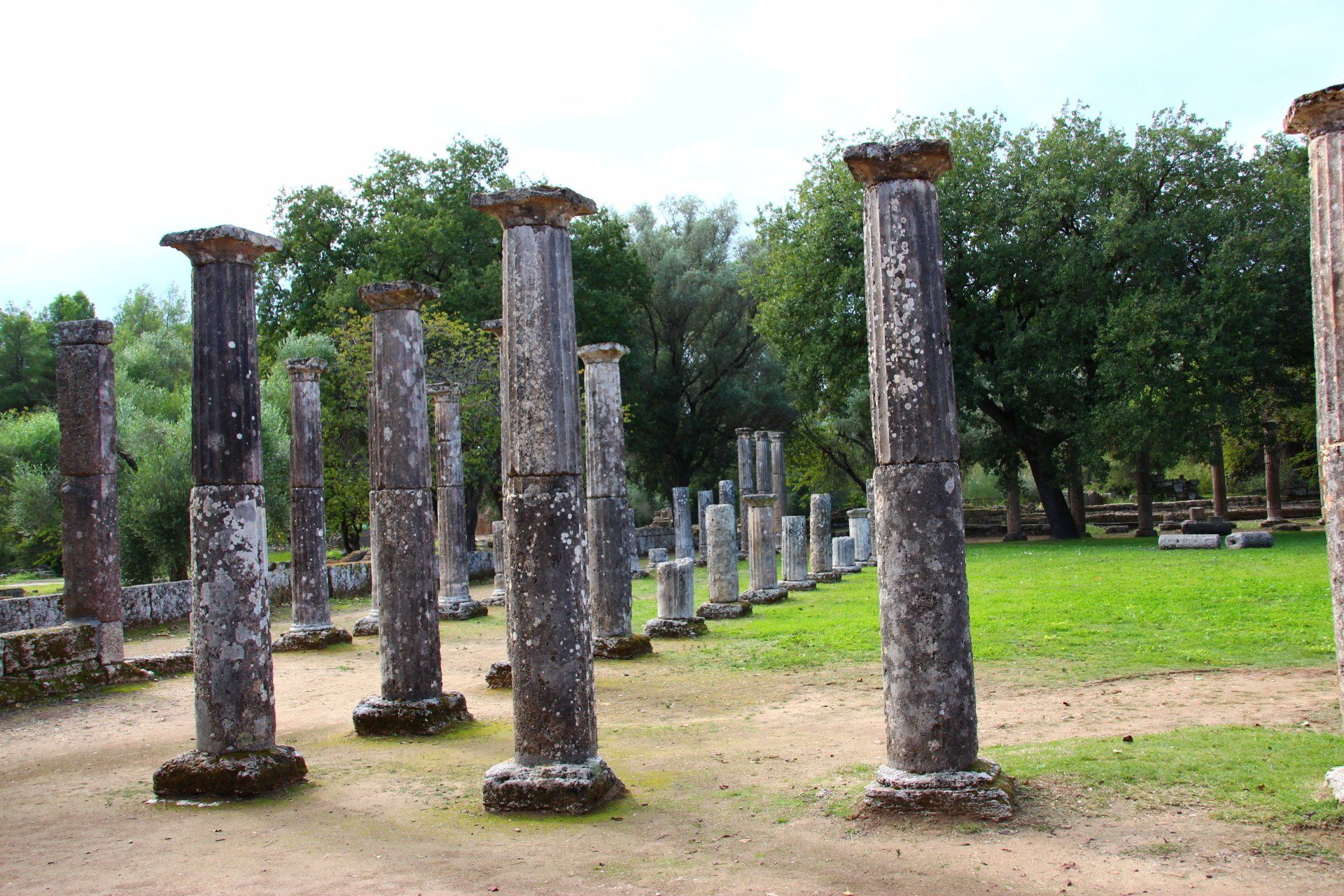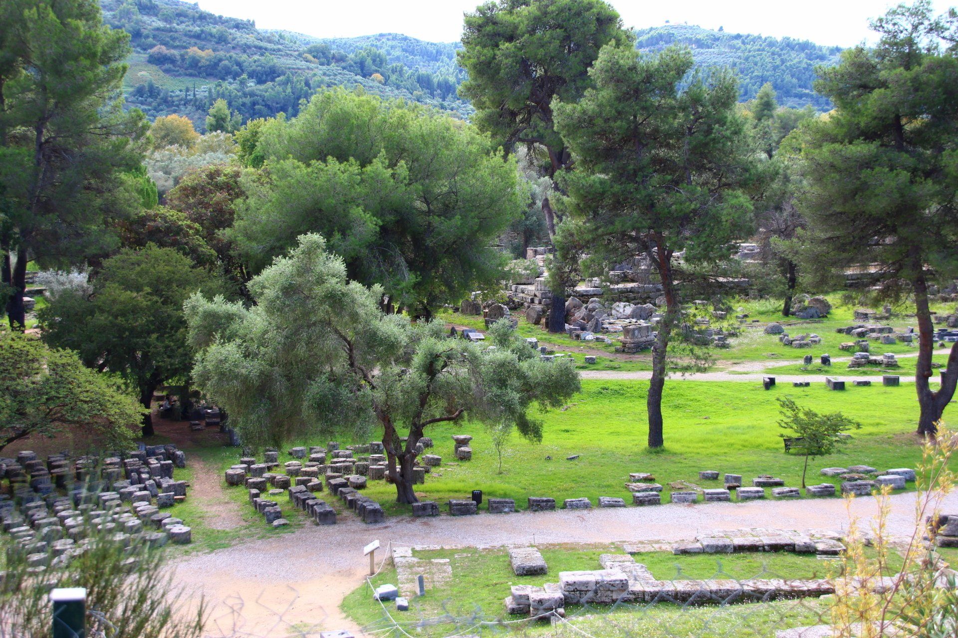 Zuerst fahren wir ein kleines Stückchen an den Ausgrabungsstätten von Olympia vorbei. Grund dafür ist, dass die Straße direkt an den Ausgrabungen vorbei verläuft und dabei ein wenig höher liegt. Somit hat man einen super Ausblick auf die gesamte Ausgrabungsstätte. Anschließend geht es die Straße wieder zurück zum Eingang. Dort machen wir Halt an einer Bank. Da es Jasmin keine Ruhe lässt und sie sich unwohl dabei fühlt, die Räder und all unsere Sachen alleine dort stehen zu lassen, gehe ich alleine in die Ausgrabungsstätte um mir alles anzusehen. Schade. Das Gelände ist recht weitläufig. Ich schaue mir unter anderem das alte Stadion an, sowie verschiedene Tempel und Überreste von Gebäuden und Bädern. Vieles wurde wieder rekonstruiert. Sehr beeindruckend. Nachdem ich mir alles angeschaut habe, gehe ich wieder zurück zu Jasmin. „Da bist du ja wieder“ begrüßt sie mich und versteckt die angefangene Keksverpackung. „Hey! Ich will auch welche!“ rufe ich ihr zu und schnappe mir die Kekse. Wir machen noch kurz Pause und mümmeln ein paar Kekse, ehe wir weiterfahren.