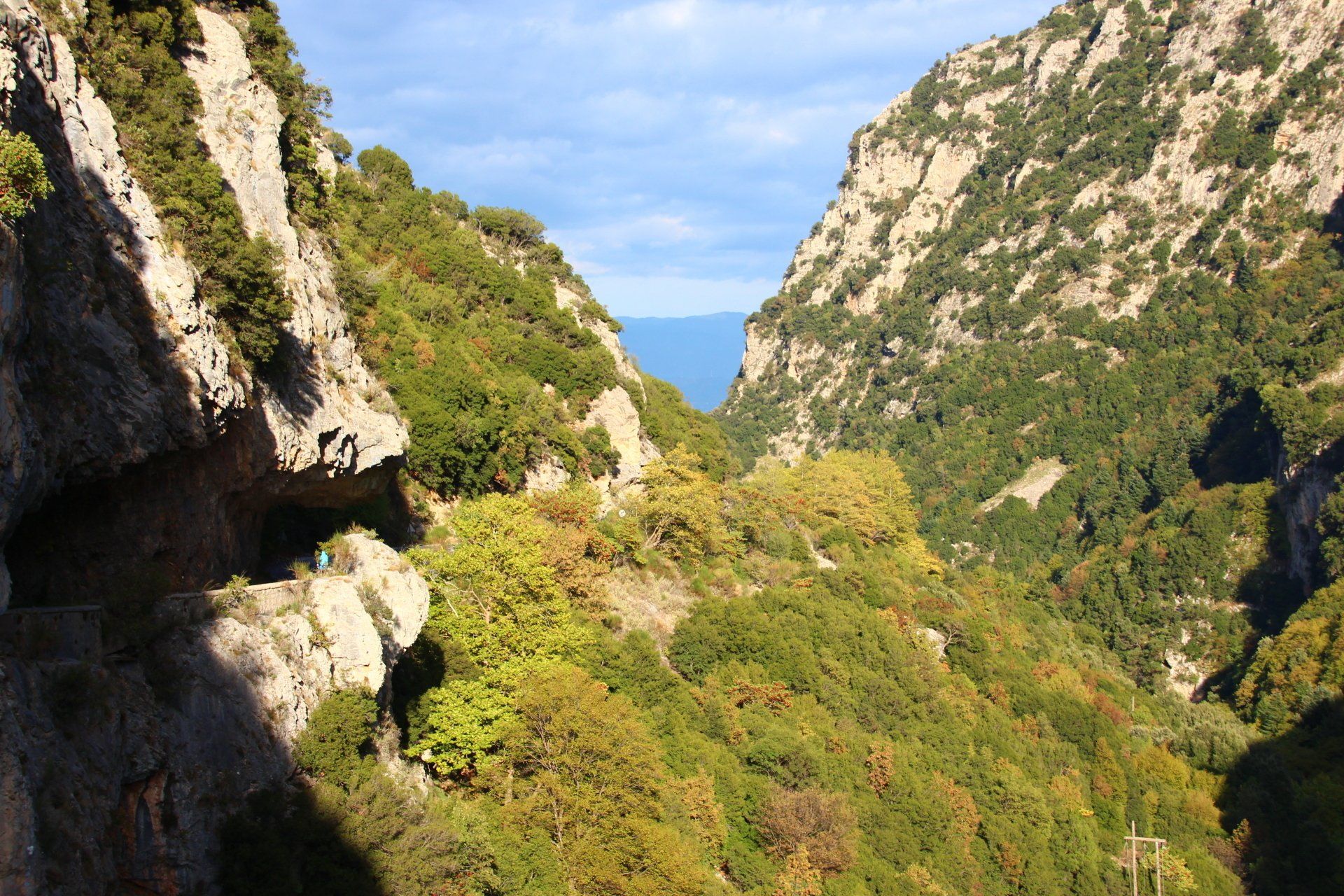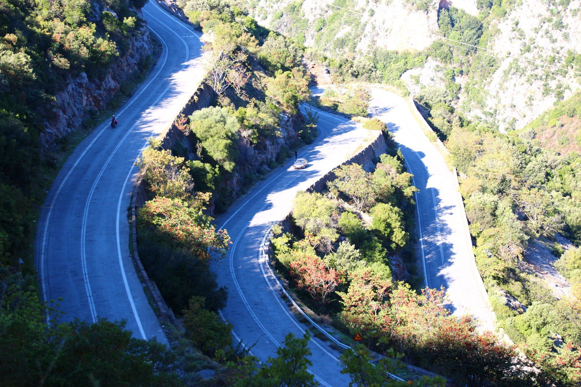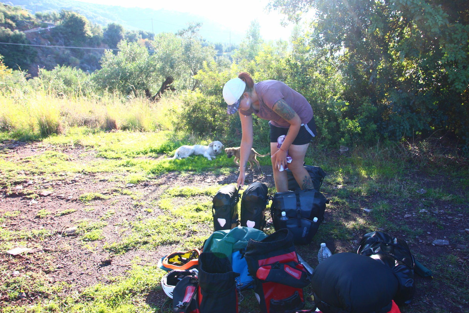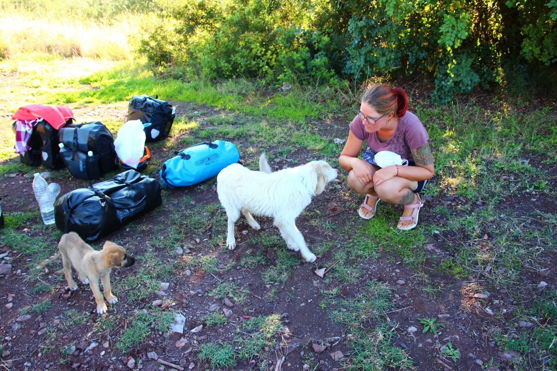Die Halloween Nacht haben wir lebend überstanden. Keine Wildschweine, keine Zombies und auch keine Maskenmörder. Der Morgen beginnt schon recht warm und wolkenlos. Das wird heute wohl noch ein warmer Tag werden. Wir setzten uns vor unser Zelt um zu frühstücken, da bekommen wir überraschend Besuch von zwei Hunden. Einem sehr zutraulichen aber auch sehr abgemagerten Welpen und seiner Mama, die sich zuerst nicht wirklich für uns interessiert und einfach an uns vorbei läuft. Der Welpe hingegen ist ganz interessiert an uns und unserem Essen. Wir geben ihm etwas von unserem Brot ab und er bekommt auch ein paar Streicheleinheiten von uns. Während des Frühstücks wuselt er die ganze Zeit bei uns umher und ist an allem interessiert. Irgendwann kommt dann auch seine Mutter zu uns und wir fangen an zusammenzupacken. Die beiden spielen miteinander und kommen immer wieder mal neugierig schnuppern. Super süß die beiden. Gerne würden wir sie beide mitnehmen, aber leider ist das nicht so einfach. Irgendwann ist jedoch der Zeitpunkt gekommen, Auf Wiedersehen zu sagen. Während wir unsere Räder zurück zur Straße schieben, begleiten uns die beiden. An der Straße angekommen, schieben wir unsere Räder auf die richtige Straßenseite. „So ihr zwei, Auf Wiedersehen und passt auf euch auf“ rufe ich ihnen winkend zu. Auch Jasmin verabschiedet sich von ihnen „und passt auf das ihr nicht ohne zu gucken auf die Straße rennt“. In dem Moment als wir aufsteigen und los fahren, kommt ein Läufer um die Kurve. Er sieht ganz schön fertig aus. Außerdem hat er eine Startnummer um. „Kaliméra“ begrüßen wir ihn mit einem Lächeln. „Kaliméra“ erwidert er mit einem angespannten Lächeln. Wir fahren los. „Ich glaube hier findet heute ein Lauf statt“ sage ich zu Jasmin. „Sieht danach aus. Warum sollte er sich denn sonst eine Startnummer umhängen“ antwortet sie mir. Wir folgen der Straße, die leicht aber dafür ein ganzes Stück kontinuierlich bergauf führt. Dabei kommen uns noch zwei weitere Läufer mit Startnummern entgegen. „Ok, hier muss definitiv ein Lauf stattfinden. Jetzt bin ich ja schon ein wenig neidisch“ sage ich zu Jasmin. „Du wieder“ antwortet sie mir mit einem Gesichtsausdruck der sagt „reicht es dir nicht, nur um die Welt zu radeln“. Auch sie grüßen und feuern wir an, was sie sehr freut. Genauso staunen sie über uns. Nach ein paar Kilometern sind wir am höchsten Punkt angekommen. Jetzt geht die Straße in sehr sehr engen Serpentinen ein ganzes Stück hinab. Ich halte an und sage zu Jasmin „fahr du ruhig weiter. Ich will ein paar Fotos machen“. „Ok“ antwortet sie mir und rollt weiter. Wow. Die Aussicht ist wirklich cool. Ich packe die Kamera aus und schieße ein paar Bilder. In der Zeit kommt wieder ein Läufer an mir vorbei. So den fragst du jetzt was für ein Lauf heute stattfindet und was für eine Distanz. Ich grüße ihn und feuer ihn kurz an. Anschließend frage ich ihn in kurzen schnellen Sätzen. Ah.... Jetzt bin ich schlauer. Heute, bzw. gestern war der Start des Immortals Race (Lauf der Unsterblichen) der in Tripoli startet und über Sparta nach Kalamata führt. Insgesamt 140Km durch die Berge. Somit ist es ein Ultramarathon. Ach, da werden Erinnerungen wach an meinen ersten Ultramarathon. Hätte ich das gewusst, hätte ich spontan teilgenommen. So Schluss mit dem Tagträumen. Mittlerweile ist Jasmin unten angekommen und winkt mir zu. Kamera verstauen und los geht es. Auf dem Weg nach unten kommt mir noch ein weiterer Läufer entgegen. Nach ein paar Kurven bin ich auch schon unten bei Jasmin angekommen. Mit den Worten „Das hat Spaß gemacht“ empfängt sie mich.