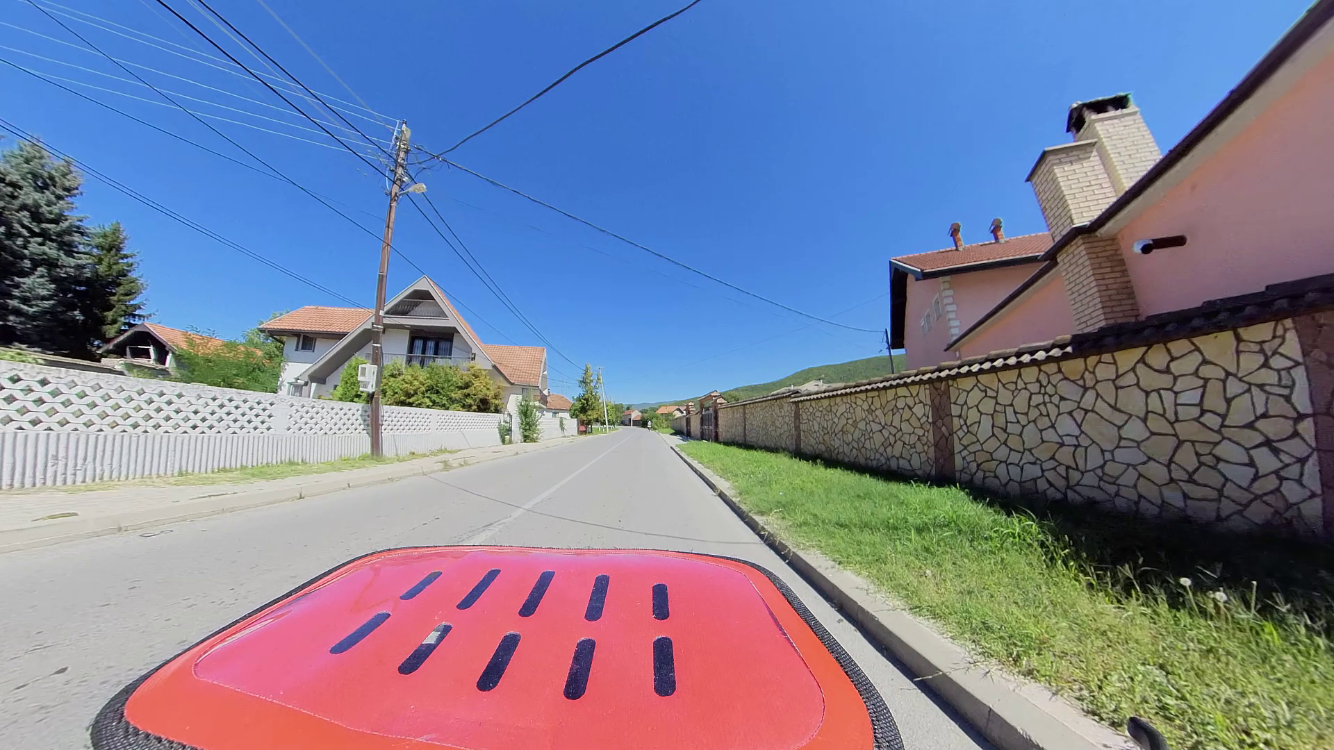 Oben angekommen, geht es nach knapp einen Kilometer auch schon wieder die komplette Höhe bergab in die Stadt Kumanovo. Auf einer Nebenstraße, die nur knappe 100m nahezu parallel zur Hauptstraße verläuft, verlassen wir die Stadt wieder. Die Nebenstraße haben wir fast die ganze Zeit für uns alleine. Warum, wird uns auch schnell klar. Sie war wohl mal vor einigen Jahren die Hauptstraße gewesen, bevor die neue Hauptstraße gebaut wurde. Sie ist übersät mit Schlaglöchern und der Asphalt hat auch seine besten Jahre lange hinter sich. Nach einer Weile wird es uns dann zu lästig den ständigen Schlaglöchern auszuweichen und wir wechseln auf die Hauptstraße. Zu unserem Glück ist hier aber auch nicht viel los. Hin und wieder fährt ein Auto an uns vorbei, wobei das ein oder andere uns zu hupt und die Insassen uns zu winken. Es geht immer wieder hoch und runter. Um uns herum ist nichts außer Natur, Hügel und Berge. Dazu brennt die Sonne von oben auf uns herab. „Mensch, heute ist es aber auch wieder ganz schön warm“ sage ich zu Jasmin, als wir eine kleine Pause am Straßenrand im Schatten eines einzelnen Baumes machen. „Was sagt denn das Thermometer?“ frag sie mich. „Moment ich gucke mal nach. 36°C“ antworte ich ihr. Wir beschließen so langsam nach einen Schlafplatz Ausschau zu halten. Kurze Zeit später werden wir auch schon fündig. Wir folgen einer kleinen Abfahrt die von der Hauptstraße wegführt und entdecken eine große Wiese, wo nur ein paar einzelne Birnenbäume stehen. „Hier ist doch super!“ sage ich zu Jasmin und deute auf die Wiese. „Finde ich auch und man wird nicht direkt von der Straße aus gesehen“ antwortet sie. Wir fahren auf die Wiese und suchen uns ein nettes Plätzen zwischen zwei Birnenbäumen. Während wir zu Abend essen unterhalten wir uns noch ein wenig. „Heute der Tag hatte es aber auch wieder in sich!“ äußert dabei Jasmin. „Waren ja auch immer hin 1030Hm, die wir heute gemacht haben und das bei der Hitze“ antworte ich ihr. Nach dem essen heißt es abspülen und ab in Bett. Am nächsten Morgen der gleiche Ablauf wie immer. Aufstehen, Frühstücken, Zähne putzen, Sachen packen und los geht es. Wir folgen der Straße weiter Richtung Osten. Auf einem geraden Stück tauchen links und rechts, sowie in der Mitte der Fahrbahn Leitplanken auf und der recht neue Asphalt endet hier. Scheinbar wurde hier die „alte Straße“ abgetragen und die Fahrbahn wird erneuert. Doch von Arbeitern oder Baumaschinen ist weit und breit nichts zu sehen. Eine ganze Weile später taucht hinter einer langgezogenen Kurve auf einer sehr langen Geraden dann Bauarbeiter auf, die die Straße neu teeren. Als wir auf der Höhe der Bauarbeiter sind, winken und lächeln sie uns zu. Was wir erwidern. Direkt hinter ihnen beginnt die neue super geteerte Straße. „Wow, man kommt gleich viel schneller vom Fleck!“ ruft Jasmin mir zu. Einige Zeit später kommen wir an einem kleinen Örtchen vorbei. An einem kleinen Minimarket decken wir uns mit neuen Lebensmittel ein. Ab jetzt geht es bis zur bulgarischen Grenze nur noch bergauf. Aktuell befinden wir uns auf 470Hm. Die Grenze zu Bulgarien liegt auf 1170Hm und ist noch gute 31Km entfernt. Die Straße schlängelt sich immer weiter Richtung Berge. „Hey, guck mal. Fast geschafft. Da vorne sieht man schon die Fahnen vom Grenzübergang“ rufe ich Jasmin zu. „Ja, da hinter den 50 Kurven!“ ruft sie mir zurück.