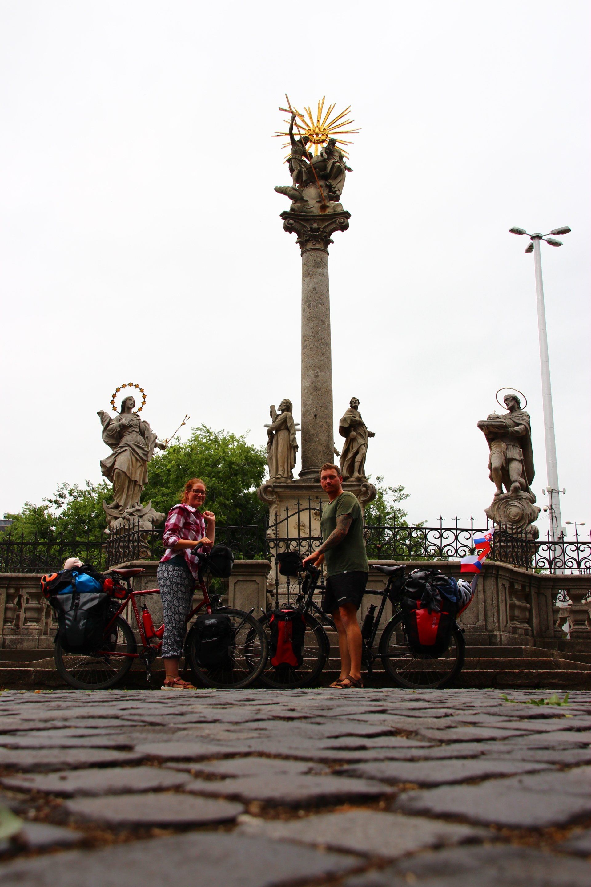 Mir wird es im T-Shirt zu kalt. Also ziehe ich mir meine Regenjacke über. Als wir bei Hainburg dann ein Stück bergauf fahren, sehen wir, dass von hinten eine dicke Regenfront auf uns zu gerollt kommt. „Ohje“ rutscht es mir raus. Eigentlich wollten wir ja kurz vor der slowenischen Grenze zelten, aber jetzt schlägt mir Basti vor, „Es sind jetzt noch 13 Kilometer bis Bratislava und wir haben es gerade einmal 15Uhr. Sollen wir heute schon nach Bratislava und uns dort eine günstige Unterkunft nehmen?“.
