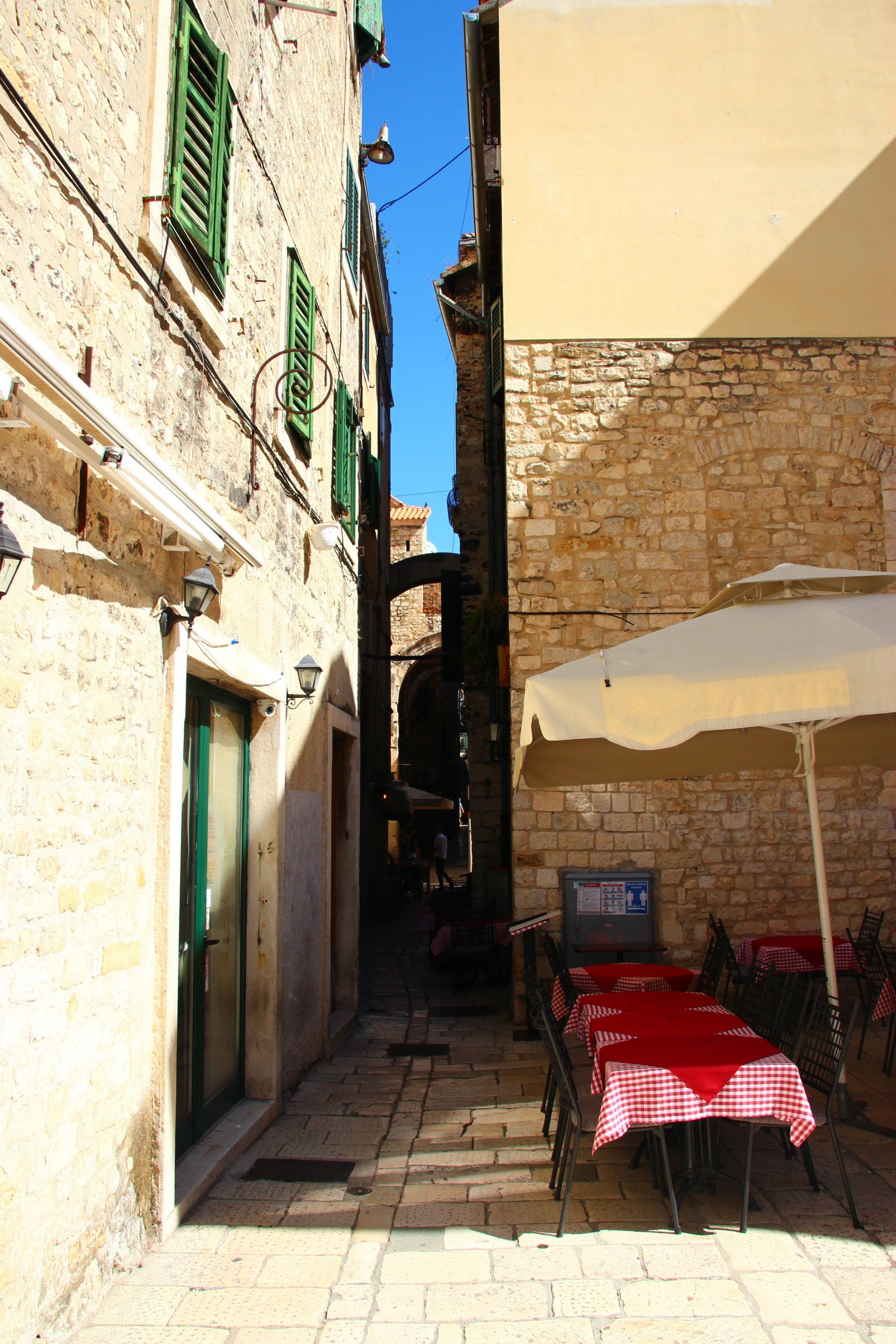 „Finde ich auch“ erwidert sie. Wir fahren eine ganze Weile durch Split, bis wir an unserer Unterkunft ankommen. Dort werden wir von einer netten Frau in Empfang genommen. Sie zeigt uns alles und wünscht uns einen schönen Aufenthalt. Nachdem wir alles in der Wohnung verstaut haben und frisch geduscht sind, machen wir uns auf den Weg in die Altstadt, die nur wenige Gehminuten entfernt ist. Wir suchen uns ein nettes kleines Lokal aus,