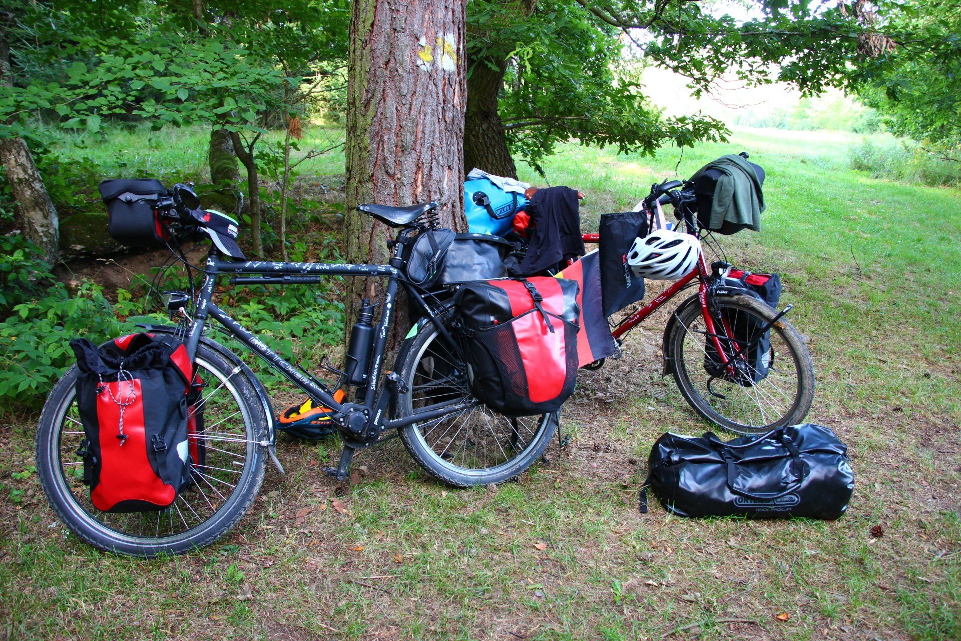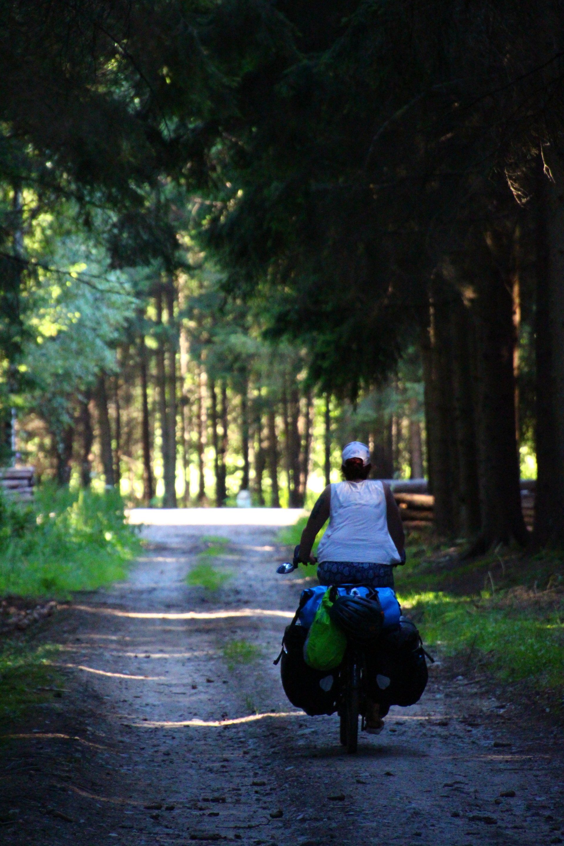 So fahren wir den Weg, den Basti ausgekundschaftet hat, bis wir an unserem heutigen Schlafplatz ankommen. „Hier ist es schön. Der Platz gefällt mir“. Wir stellen unsere Räder an einen Baum.