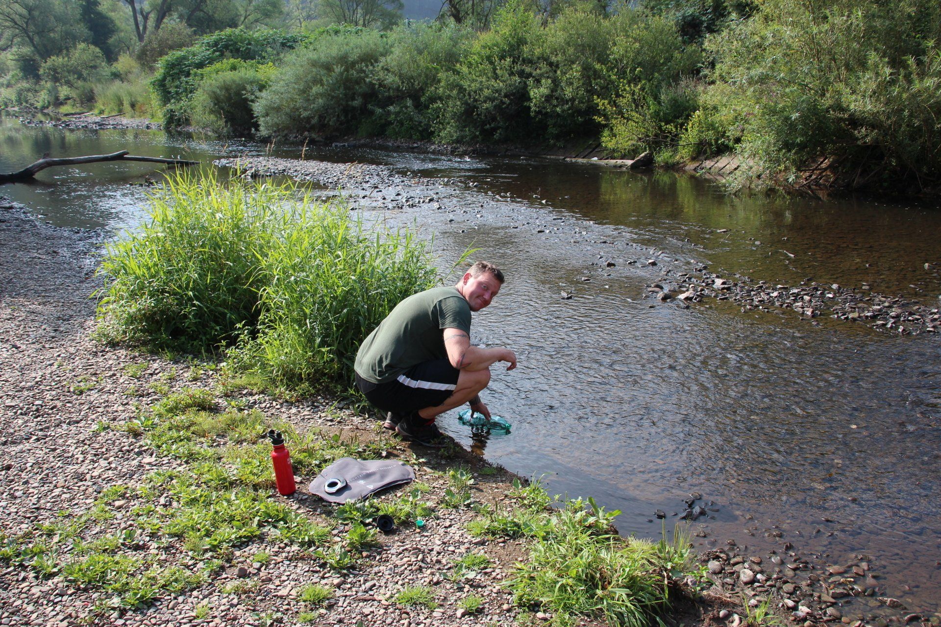 Wir freuen uns beide sichtlich auf das bevorstehende Mahl. Das Spazierengehen fühlt sich anfangs etwas merkwürdig an. Ungewohnte Bewegung. An der Pizzeria angekommen, müssen wir schockiert feststellen „Dienstag ist Ruhetag“. Was für ein Schlag in die Magengrube. Ok, dann wieder zurück zum Zelt und selbst kochen. Der folgende Tag beginnt mit viel Sonnenschein. Unser heutiges Ziel, der Perlsee bei Wiesau. Unser Weg führt uns eine Weile an dem Fluss Weißer Main entlang.