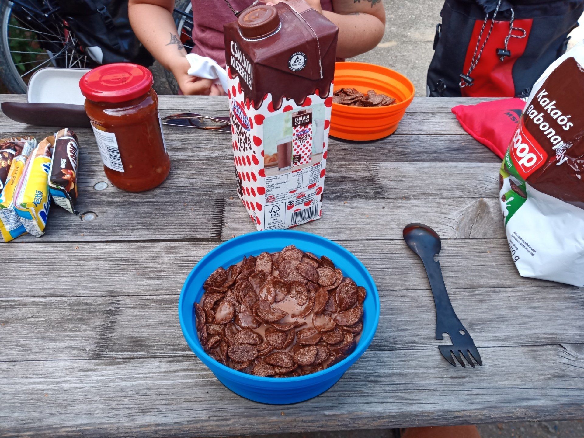 Heute gibt es Frühstücksflocken mit frischer Milch. Und ich habe noch ein paar Müsliriegel für später gekauft“ erzählt er mir merklich glücklich. Zu unserem Glück befindet sich direkt neben dem Supermarkt ein Tisch mit zwei Bänken. Hier Frühstücken wir erst einmal. Anschließend geht es weiter Richtung Südwest. Heute werden wir Slowenien erreichen. Kurz hinter der Ortschaft führt uns unser Weg ab von der befestigten Straße und wir fahren auf einer recht guten Schotterpiste weiter.
